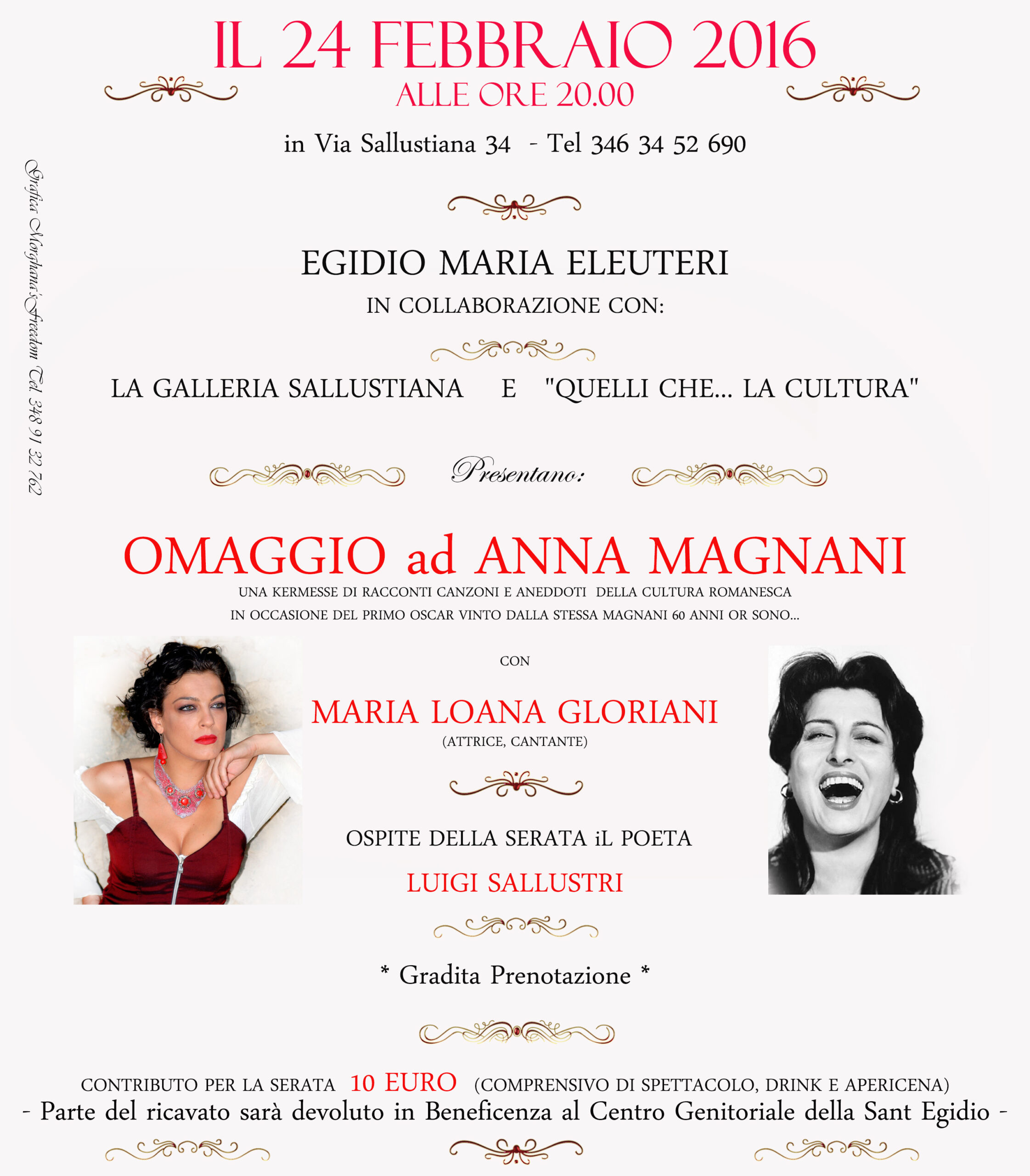 a cura di Maria Loana Gloriani con racconti, canzoni, e aneddoti, in ricordo dei 60 anni dell’Oscar vinto da Anna Magnani