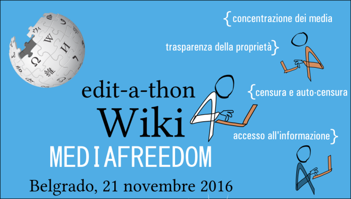 Il 21 novembre giornalisti, attivisti per la libertà di stampa, esperti, volontari di Wikipedia si incontreranno a Belgrado, in Serbia, per l’edit-a-thon “Wiki4MEdiaFreedom”. L’edit-a-thon avrà luogo all’ImpactHub di Belgrado, prima dell’inizio dei lavori del South East Forum, conferenza annuale dedicata allo stato dei media nell’Europa sud-orientale. La giornata si aprirà con un breve tutorial su come creare contenuti su Wikipedia, seguiranno 4-5 ore di lavoro realizzato in stretta collaborazione tra wikipediani e partecipanti. “Wiki4MEdiaFreedom”si inserisce nell’ambito del progetto European Centre for Press and Media Freedom (ECPMF), ed è organizzato da Obc Transeuropa in collaborazione con Wikimedia Serbia e con il supporto di Wikimedia Italia, le corrispondenti nazionali della Wikimedia Foundation, la fondazione che si occupa della promozione del sapere libero a livello globale.