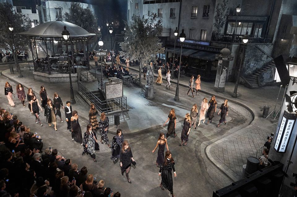 Pizzo e pizzo a intarsio, spesso laminato platino e sovrapposto a un tessuto lamé di crepe; applicazioni tagliate a laser; la tridimensionalità delle applicazioni di fiori tremblant con frange; gli abiti di ciniglia a fil coupé; abiti, gonne, cappotti a pantaloni in cui una zebratura bionda ridisegna il concetto di animalier; cappotti di mohair leggero su cui lo jacquard riproduce le cancellature antiche della sede di Palazzo Donizetti a Milano; top costruiti con fili di seta intrecciati e arricchiti di paillettes cabochon dipinte.