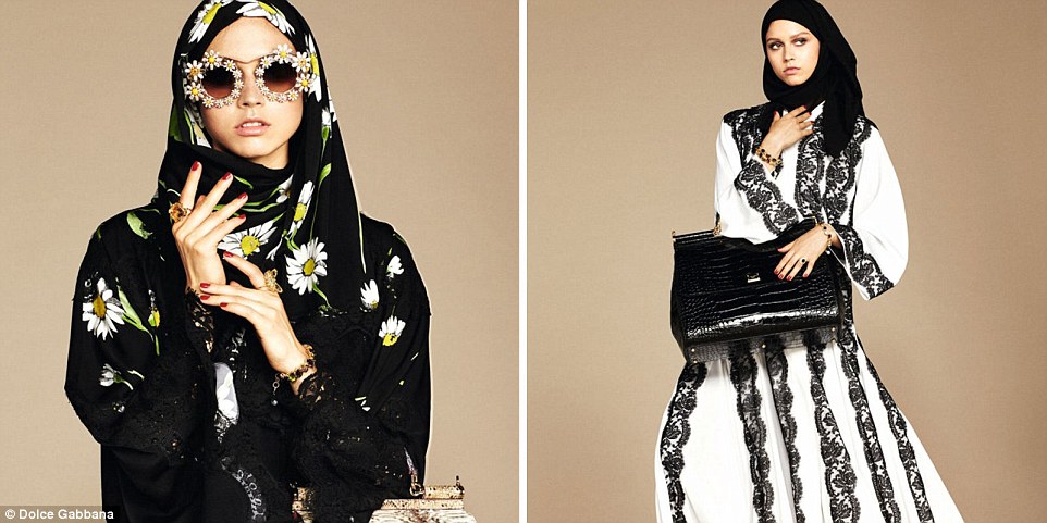 Arriva la prima collezione di Dolce & Gabbana disegnata ad hoc per le donne islamiche. Presentata dallo stesso Stefano Gabbana sulla sua pagina Instagram e sul sito Style.com/Arabia comprende hijab e abaya, la veste che copre tutto il corpo. Tutto è nero o beige impreziosito da inserti in pizzo, applicazioni floreali ed arabescate, pietre, stoffe ravvivate da margherite, limoni e pois, tutti motivi cari ai due stilisti.