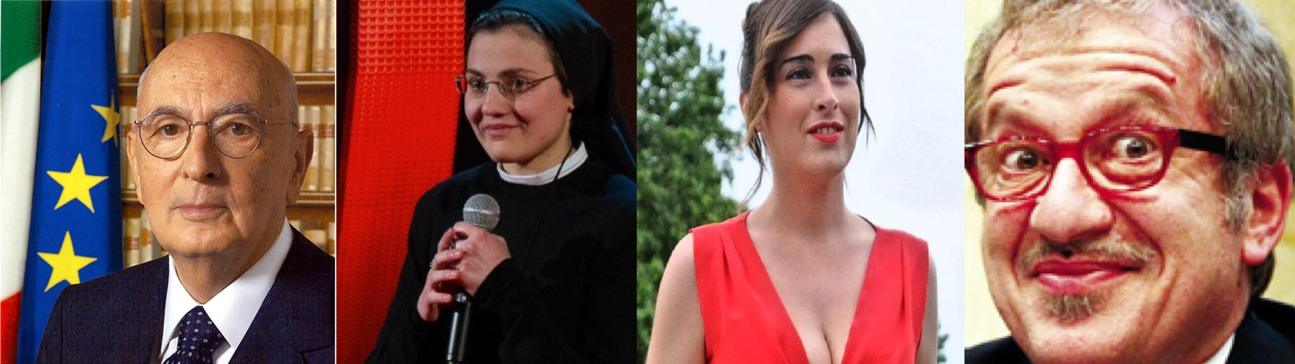 A) CLEOPATRA, MESSALINA e POPPEA, …. Il “Mestiere” più antico del Mondo – tra Roma e la IV Sponda = B) Patrizia D’ADDARIO, Nicole MINETTI, Ruby RUBACUORI, ….. il Trio delle Mantidi Religiose – le Gran Dame dell’Ex Cavaliere (rappresentano sempre l’Italia e la IV Sponda) = C) Rosy BINDI, Susanna CAMUSSO, Laura BOLDRINI, …. le “Signore della nostra Repubblica” che personificano la grazia, bellezza, intelligenza (ove invertendo l’ordine dei nomi, gli aggettivi possono restare immutati); = D) Brigitte BARDOT, Patty PRAVO, Marylin MONROE, …….. I nostri sogni e i nostri miti giovanili – Divinamente e Bellissimamente Bionde = E) CORNELIA, la madre dei Gracchi; IPAZIA d’ALESSANDRIA, la libertà del pensiero; GIOVANNA d’ARCO, la pucelle d’Orleans. – Madri, Filosofe- Scienziate e Sante Guerriere
