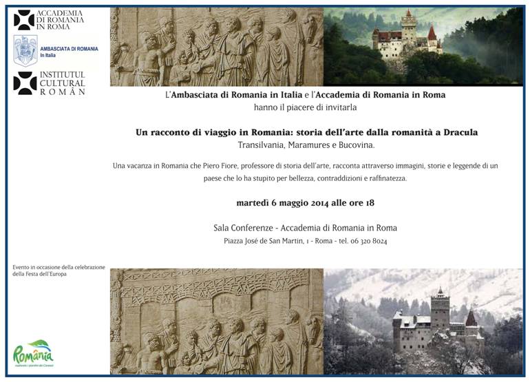 Martedì 29 aprile, l’Accademia di Romania in Roma organizza il Convegno italo – romeno “Terme imperiali – terme provinciali. Roma e la Dacia”. Interverranno studiosi e specialisti dell’Italia e della Romania: Mihai Barbulescu (Accademia di Romania, Roma), Dragos Blaga (Cluj-Napoca), Florin Fodorean (Università „Babes-Bolyai” Cluj-Napoca), Josep Guitart i Duran (Institut Català d’Arqueologia Clàssica, Tarragona e Universitat Autònoma, Barcelona), Anna Maria Liberati (Roma), Dan Matei (Museo di Storia, Turda), Irina Nemeti (Museo Nazionale di Storia della Transilvania, Cluj-Napoca), Sorin Nemeti (Università „Babes-Bolyai” Cluj-Napoca), Marina Piranomonte (Soprintendenza Speciale per i Beni Archeologici di Roma), Mariana Pîslaru (Museo di Storia, Turda), Marta Prevosti (Institut Català d’Arqueologia Clàssica, Tarragona), Enrico Silverio (Foro di Roma), Paolo Sommella (Istituto di Studi Romani, Roma).